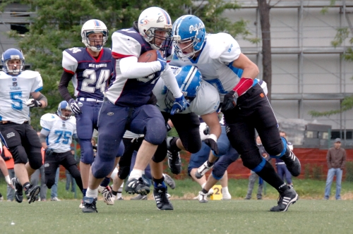 Partita molto combattuta e bella vittoria dei Pirates Savona, che vincono in casa dei Blue Storms Gorla Minore per 8-6. Si decide tutto nella seconda parte, dopo che i primi due quarti di gioco si erano chiusi sullo 0-0. Di Castagnola l’azione decisiva, cioè una corsa di 20 yard con trasformazione da due punti. Chiudono con una vittoria i Commandos Brianza, che battono in casa 20-6 i Blitz Ciriè mettendo le cose in chiaro nella prima metà della partita: 14-0 alla fine del secondo quarto, poi un terzo periodo da 0-0 e l’unica segnatura degli ospiti nell’ultimo quarto, chiuso con un parziale di 6-6.