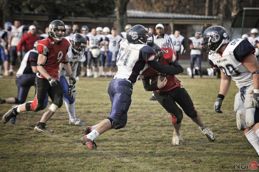 La giornata di domenica ha riservato poche sorprese ed alcune certezze nello svolgersi dei gironi che compongono il calendario del CIF9 Italiano. La partita tra Skorpions Varese e Blues Storm Busto Arsizio è stata la sfida tra la due compagini che hanno segnato la vita sportiva del football varesino in questi anni. In quel meraviglioso campo verde di Vedano dove oltre 300 appassionati sostenitori del nostro sport si sono affacciati al teatro della più incredibile battaglia sportiva di questi ultimi anni, abbiamo assistito ad un duello dove colpi di scena, scorribande piratesche da un lato e forza fisica dall’altro hanno determinato l’esito finale. Il risultato 25 Skorpions – 36 Blues Storm ci racconta di una sfida dove i due staff tecnici si sono ritrovati nel dare al pubblico una giornata indimenticabile. Da una parte la formazione di casa, sempre con ragazzi in doppio ruolo (in tutto 18 giocatori) e con alla fine un debito d’ossigeno che ha inciso proprio nel momento più importante della partita: quello del consolidamento del risultato; dall’Altra una formazione composta da molti gladiatori provenienti da più teatri di lotta, riuniti in una forte e corposa squadra (ben 36 giocatori) che ha visto alla fine primeggiare la propria consistenza numerica e la possibilità di schierare sempre attacco e difesa in singolo ruolo. Alla fine del terzo quarto la partita era ancora in equilibrio, un equilibrio determinato dalle giocate pensate e cercate dallo staff tecnico varesino, che non demordeva e colpo su colpo rispondeva alla forza fisica e alla superiorità numerica dei BS. 25 a 21 era il risultato a favore degli Skorpions alla fine del 3 quarto; ma dopo ore di battaglia i nostri eroi, hanno dovuto segnare il passo e nonostante le giocate di Bumba, Garnica – strepitoso ritorno di Punt in TD – e di Granelli il doppio ruolo di tutti lasciava il segno, e nell’ultimo quarto Busto BS sorpassava con due TD la formazione varesina. Onore ai giocatori nero rossi, onore a questi ragazzi che anche oggi come domenica scorsa hanno dato l’anima in campo! Sono, TUTTI, stati incredibili per abnegazione per attitudine, per passione e amore per questo nostro sport. I fratelli Munoz hanno dato ogni energia e alla fine, hanno capito il valore della loro prestazione. Fortunali Marco e Raffaele Antonio al loro esordio hanno contribuito non poco alla tenuta e nonostante l’impiego a tratti, hanno dato modo di riposare e di respirare agli altri. In alcuni tratti si è visto in campo “Uncle” Zanella, nella inedita veste di ricevitore e quale secondo QB allor’quando per alcuni minuti ha sostituito il QB titolare Micheli – grandi giocate le sue con i suoi ricevitori e il suo Backfield portatore di molteplici palloni – vittima di un infortunio di gioco poi rientrato. Tutti i ragazzi presenti si sono resi conto di quello che voleva dire la sfida di oggi; Affrontare i Blues Storm in questo momento iniziale del campionato ha dato alla nostra società il senso della forza e della volontà dei nostri giocatori.Super difense che ha dato il massimo, super Limido! I momenti eclatanti della partita sono legati al botta e risposta di TD tra le due formazioni con un crescendo della difesa BS nel finale e una serie di Giocate dell’attacco Skorpions degne dei tempi migliori, su tutte come detto il ritorno di Garnica che attraversava le linee avversarie tracciando linee impossibili ed evitando placcaggi e blocchi da raggiungere isolato la linea del TD 70 o 80 yards di corsa solitaria. Alla fine credo ed è dovere nostro segnalare come sia la formazione dei BS sia la formazione degli Skorpions abbiano dato dimostrazione di cosa voglia dire il Football oggi: Il rispetto di chi ha vinto tributato alla nostra squadra, il rapporto amichevole tra tutti i giocatori, lo stare insieme finale e la condivisione dei punti di vista e delle reciproche giocate. Un saluto all’allenatore, vecchia volpe Massimo detto il Nonno – del Blues Storm che ha giustamente motivo di essere orgoglioso della sua formazione che ha dimostrato, grazie al numero impressionante di giocatori di poter guardare ad un campionato ad alto livello. Un grazie alla Santa Salamella finale che ha sancito il rapporto di amicizia tra le due formazioni. Ma un grazie va al nostro coaching staff che ha dato ai nostri ragazzi modo di guardare avanti e di capire quali saranno i prossimi ed importanti passaggi da sostenere. Oggi i ragazzi hanno raggiunto la consapevolezza dei loro mezzi, significative le parole del Presidente: ” Contrariamente a chi vede solo la sconfitta, sono felice sapevo che il risultato sarebbe stato in equilibrio sino alla fine, ma abbiamo raggiunto una maturità tale da poter avere solo certezze d’ora in avanti.” Il Coach Nardi, che qualcuno tra i giovani presenti sugli spalti, per propria ignoranza della storia di questo meraviglioso sport non sapeva chi fosse – Beata Ignoranza, pensano di giocare a football e lo fanno da pochi mesi e si credono già in grado di giudicare ……… Nardi ha vinto 2 SuperBowl e ha un esperienza di squadre Italiane e nazionale unica – nel suo stringato commento finale ha ricordato allo scrivente” oggi abbiamo posto le basi per il futuro”. PS le statistiche non sono reperibili, perché elaborate dal “Grande Fratello” della Federazione, il nuovo sistema impedisce di avere dati diretti e immediati; nei meandri del misterioso sistema di elaborazione e calcolo si spera nel futuro di aver luce su quanto fatto nella giornata di ieri, così giusto per capire quali diavolerie si dovranno mettere in campo la prossima volta. Il Roster Odierno era così composto: Aimetti Pierangelo, Bianchi Cristian, Capedri Edoardo, Carelli Claudio, Corriga Francesco, Di Gennaro Tommaso, Facetti Marco, Fortunali Marco, Garnica Mighel, Granelli Stefano, Limido Pietro, Magnarelli Simone, Munoz Kevin, Munoz Cristian, Micheli Giacomo, Raffaele Antonio, Vaz Fhilo Noel, Zanella Paolo.