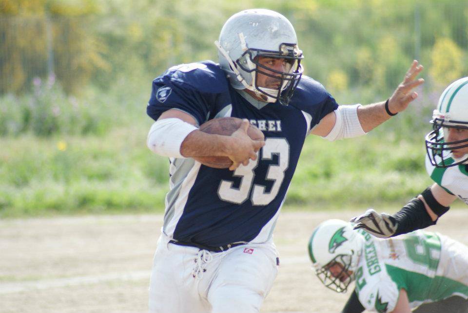 A pochi istanti dall’inizio partita i nero/oro metto subito il loro primo sigillo siglando con un ottima corsa di Procopio che si precipita in end zone avversaria evitando i giocatori della difesa pitagorica, trasformando il punteggio in 6/0 per i padroni di casa, il successivo pat non viene trasformato e il punteggio rimane invariato. La risposta della compagine crotonese non si fa attendere e l’attacco capitanato da Herman Falbo si porta in parità sfruttando il veterano Bruno che sigla il 6/6 per la squadra avversaria, la trasformazione al piede di Kolev porta in vantaggio i pitagorici per 6/7. Le due squadre si contro bilanciano per quasi tutto il 1° quarto fino a quando il solito Megna sblocca il risultato con una corsa personale e porta il punteggio sul 12 a 7 per i padroni di casa. La successiva trasformazione va ancora una volta a vuoto. L’inizio del secondo quarto si apre con l’uscita dal campo per infortunioi di Perri che fino a quel momento era il migliore in campo per la difesa pitagorica. Il successivo drive degli Achei porta il marchio di Lauro, il giovane runner è autore di un ottima prestazione le sue corse sono ben fatte e veloci. E segna così il td che riporta in vantaggio gli Achei 12 a 13. Complice un espulsione del capitano della difesa su un presunto fallo ai danni del runner Pugliese le fila della squadra ospite si assottigliano ulteriormente. Sul finale del 2° quarto Megna mette un ulteriore td nella sua lista personale 18/13 ma ancora una volta i pitagorici rispondono e con un ottimo lancio sul giovanissimo Ierimonti, 18 anni e alla sua prima partita, che agguantata la palla e si invola in end zone e la successiva trasformazione di Lazzarin chiudono in vantaggio i primi 2 quarti con il risultato di 18 a 21. Al rientro in campo per tutti i due quarti successivi le squadre si combattono con caparbietà e pregiate azioni, entrambe le difese hanno aggiustato il tiro e lasciano poco spazio a gli avversari. I nero oro però si fanno trovare più preparati dei pitagorici e con Procopio si riportano in vantaggio 24 a 21. Inizia a questo punto un drive fulminante degli Achei che guadagnano yards su yards e chiudono i down uno dopo l’altro fino ad arrivare a un primo e goal a 5 yards dalla segnatura. A questo punto però sembrano aver perso al carica dimostrata e permettono alla difesa avversaria di bloccarli per ben 4 volte a pochissime yards dal vantaggio e probabilmente dalla vittoria. Negli ultimi istanti dell’incontro è Megna che come detto corre per l’ennesima volta mettendo al sicuro il risultato finale sul 32/21. Abbiamo visto in campo due squadre molto preparate, dalla partita con Messina gli achei sono completamente cambiati e si sono fatti valere e anche i rookie hanno iniziato a farsi le ossa nel mondo del football, come ha dimostrato Ierimonti con lo splendido td o i giovani Qb Herman Falbo e il runner Giorgio Lauro che hanno trascinato la propria squadra con azioni e giochi degni di un veterano. Ora non resta che concentrarsi in vista della trasferta di Messina, e affinare per bene i meccanismi di gioco perché i presupposti, in termini di atleti a disposizione, per portare a casa il risultato ci sono tutti.