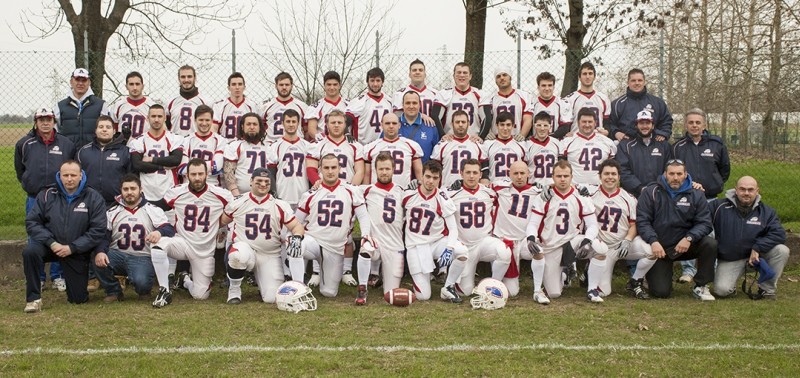 “Un grande successo di squadra”, queste le prime parole di coach Luca Brunetti al termine del “big match” di sabato sera giocato dalle Dimedia Aquile Ferrara sul campo dei Knights Persiceto. Sotto un diluvio universale, soprattutto nel primo tempo, Knights ed Aquile si sono affrontate a viso aperto mettendo in campo tutto il vigore possibile, una battaglia giocata intensamente e fisicamente da entrambe le squadre, dove il maltempo e soprattutto le condizioni del campo di gara hanno influenzato la partita, stravolto le strategie offensive ed esaltato le difese, soprattutto quella degli estensi, ancora una volta impeccabile e determinante. In palio c’era la leadership del girone “D” della North Conference, supremazia che le Aquile volevano fortemente e proprio per questo, sin dalle prime battute di gara, i rapaci hanno mostrato gli “artigli” sfoderando una grinta encomiabile. La super difesa estense blocca il primo drive offensivo dei felsinei, facendo intuire ai pur bravi avversari che la serata sarebbe stata lunga ed intensa, l’ovale viene quindi consegnato nelle mani dell’attacco ferrarese che non perde tempo e con una serie di belle giocate guadagna oltre sessanta yard, concludendo in touchdown con il quarterback Francesco Malta che supera l’end zone avversaria con una corsa, marcando i primi 7 punti sul tabellone, con l’extrapoint di Vito De Marco. La squadra è galvanizzata dalle giocate e dalla prestazione di entrambi i reparti e l’entusiasmo e l’impeto salgono alle stelle. Purtroppo lo spettacolo risulta davvero condizionato dal maltempo, una pioggia battente in poco tempo rende il campo di gioco aspro e pesante, con il fango che impedisce pesantemente le giocate degli attacchi rendendo praticamente impossibile qualunque soluzione aerea. Nella palude è la difesa delle Aquile ad esaltarsi, verso la fine del primo quarto di gioco il linebacker Andrea Mantovani compie una straordinaria giocata, recuperando il pallone perso dagli avversari e trasportando direttamente la palla in meta con una corsa di oltre venti yard , a cui fa seguito un extrapoint fallito. Si va al riposo con il risultato di 13 a 0 a favore delle Aquile, ma nella ripresa le cose non cambiano, entrambe le difese fanno buona guardia e gli attacchi non riescono a trovare soluzioni, inesorabilmente bloccati dai reparti avversari e soprattutto dalle condizioni del campo. Verso la fine del terzo quarto di gara il flanker estense Dario Mingozzi compie il capolavoro, dopo aver ricevuto il pallone cerca la corsa verso la sinistra, non trovando spazio il giocatore cambia improvvisamente traiettoria, ribalta il campo e trova un corridoio sul lato destro infilandosi tra le maglie della difesa nero-argento e correndo splendidamente per quasi novanta yard deposita l’ovale in end zone. La sfavillante giocata del player estense ricorda la leggendaria corsa del famoso runningback Marcus Allen che nel XVII° Superbowl del 1984, disputato tra Washington Redskins e Oakland Raiders, esaltò tutti gli appassionati ed i tifosi con una giocata che entrò nella storia del football americano. Il meraviglioso touchdown di Mingozzi viene trasformato dal solito De Marco ed il risultato si porta sul confortante punteggio di 20 a 0. Nell’ultimo quarto di gioco I Knights cercano il tutto per tutto ma la difesa ferrarese non molla e costringe gli avversari a limitatissimi guadagni. La meta dei padroni di casa arriva verso la fine del match a causa di un errore dell’attacco estense, il regista Francesco Malta perde la “scivolosissima” palla sulla linea delle 10 yard difensive e per la difesa bolognese è un gioco da ragazzi recuperarla e posarla in end zone per il 20 a 7 finale. Grande soddisfazione in casa Aquile, giocatori, staff tecnico e dirigenti si godono questa importante vittoria di squadra, un successo che consegna la supremazia del girone e soprattutto una grande consapevolezza sulle reali forze di questa squadra. Ora un meritatissimo riposo, le Aquile torneranno in campo il 14 aprile quando incontreranno sul terreno di casa i Neptunes Bologna.
