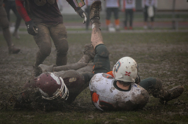Dopo la prestazione sfortunata contro gli Hogs di Reggio Emilia, gli Energy Building Dolphins Ancona hanno avuto due settimane di tempo per allenarsi e togliersi, metaforicamente e non, il fango di dosso. I ragazzi, assieme al coaching staff, guidato dal capo allenatore Roberto Rotelli, hanno avuto modo di studiare gli errori fatti e riordinare le idee e iniziare subito a guardare avanti, perché il rivale della seconda sfida non ammetterà repliche. Si tratta del rematch della sfida che nel giugno scorso era valsa la qualificazione per le semifinali scudetto: Warriors e Dolphins si trovano nuovamente di fronte, sempre al Lunetta Gamberini di Bologna, questo sabato, nella prima di due sfide che il calendario prevede tra le squadre appartenenti allo stesso girone. La compagine emiliana si presenta forte della vittoria della prima settimana, dove ha avuto la meglio dei Marines Lazio per 29-13, anche qui in una partita caratterizzata dal campo di gioco che ben presto è diventato un tutt’uno con i giocatori in campo, chiamati a lottare tanto contro gli avversari quanto contro il fango. Dalla lotta sono emersi giocatori che ormai ben conoscono il campionato italiano e in particolare da anni ormai si sono fatti ben volere dalla tifoseria locale. Parliamo di Walter Peoples (DB, #21) e Jordan Scott (RB, #32), che hanno messo il loro marchio sulla vittoria finale: il primo con un intercetto nella propria endzone che ha contribuito a scavare il solco nella seconda parte di partita, il RB con 2 corse da TD ad inizio match che hanno dato il primo vantaggio. Il 24enne Peoples sono già 3 anni che è arrivato a Bologna, inizialmente come ricevitore, ma nella squadra felsinea ha conosciuto una maturazione che l’ha reso un giocatore a tutto tondo, capace di decidere le partite sia in attacco che in difesa, emergendo come uno dei defensiveback più determinanti del campionato, lo dimostrano i numerosi intercetti messi a segno nella sua carriera italiana. Jordan Scott, a Bologna dall’anno scorso, è un’autentica forza della natura: runner che sfiora l’ ”illegalità” nel campionato italiano per le sue doti di non andare mai a terra e riuscire a guadagnare sempre qualche yard in più rispetto al primo contatto con i difensori avversari. Uno stile di corsa elettrizzante che ha fatto soffrire non poco la difesa dorica della passata stagione, soprattutto nella partita di playoff sopracitata. A cercare di mantenere l’imbattibilità casalinga dei Warriors che resiste dal 2010, oltre ai due americani confermati, quest’anno ci sarà un nuovo QB che dovrà innescare l’ormai consueto trio di ricevitori italiani Piva, Panzani e Parlangeli: si tratta di Jacob Alexander Caron. Uno che, pur se in terza divisione di college americana, è stato una star nei suoi 4 anni a Pomona-Pitzer. L’ateneo della California partecipa nella Southern California Intercollegiate Athletic Conference, di cui Jacob è stato più volte miglior giocatore e l’ha visto lanciare 8408 yard nella sua carriera “scolastica”. Caron, dopo il suo periodo al college, ha dapprima iniziato con la AFL, chiamato dagli Utah Blaze, una delle squadre più spettacolari del campionato “al chiuso” di football negli USA e poi ha già assaporato il football europeo, con un’esperienza in Svezia, con la squadra di Stoccolma. Ora i suoi primi passi in Italia, dove nella prima partita, ha messo in mostra oltre ad un rilascio fulmineo anche buonissime doti atletiche, a dispetto di una stazza comunque imponente (190 cm), che gli hanno permesso di segnare ben due TD correndo lui stesso. Un osso duro per la nuova difesa anconetana, che non ha comunque sfigurato nella prima uscita e che spera di recuperare Roman Vikhnin, rallentato e indisponibile nel debutto stagionale causa un problema all’alluce. Mentre l’attacco guarda interessato alle previsioni meteorologiche sperando che la primavera annunciata dal calendario il 21 marzo, effettivamente sbocci sui cieli italiani, per poter ritornare a vedere lo spettacolo a cui i Dolphins ci hanno abituato e che 2 settimane fa sicuramente è stato non poco influenzato negativamente dalle condizioni atmosferiche.