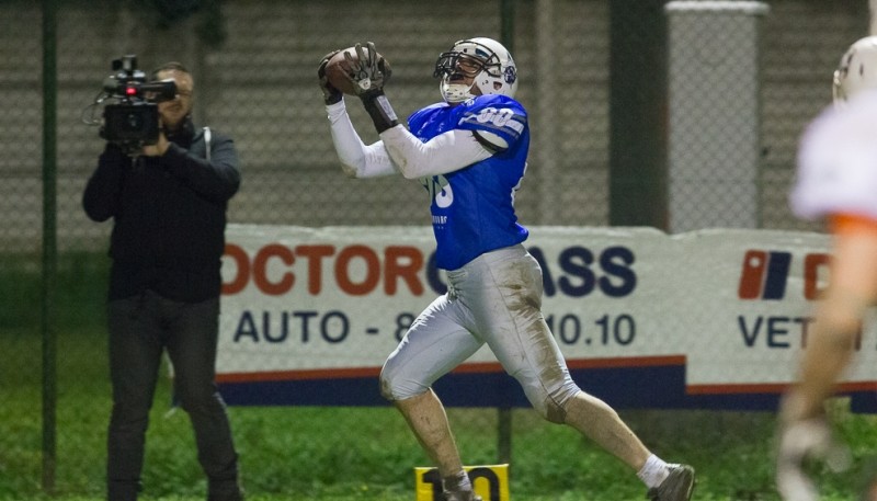 7 aprile 2013 – Seconda giornata, ancora punteggi bassi e ancora, non casualmente, partite molto combattute. Il maltempo – che ha causato anche l’inversione di campo tra Panthers e Giants – ha frenato ancora la possibilità dei team di allenarsi, e in più la nuova regola che prevede non più di due americani in campo in contemporanea, e vieta loro il ritorno dei free kick (tra cui i kickoff), ha per ora condizionato l’andamento delle partite, anche se ci vorrà ancora tempo per comprendere se questa sia una tendenza definitiva o una situazione momentanea. Ecco il dettaglio delle partite, ricordando che la IFL ora si ferma per una settimana in occasione dell’impegno della nazionale Under 19 contro una rappresentativa americana, sabato 13 aprile alle ore 16 allo stadio Primo Nebiolo di Torino SEAMEN MILANO-SAMPLA BELTING RHINOS MILANO 14-0 (6-0, 0-0, 0-0, 8-0) – Quasi 2500 spettatori e un entusiasmo evidente fin dal prepartita per la prima delle due stracittadine stagionali, in casa Seamen. Nei Rhinos debuttava tra l’altro Kadarron Anderson, linebacker americano dalle ottime credenziali che ha confermato le sue doti, assieme al compagno di reparto AJ Storms, e sostituendo tra l’altro l’infortunato Daniele Pezza. I Seamen sono passati in vantaggio per 6-0 nel primo quarto, chiudendo in end zone con un lancio di 22 yard di Jordan La Secla per Gianluca Santagostino un drive che aveva avuto il suo momento più illuminante in un altro pass del quarterback americano per il connazionale Shawn Abuhoff. Niente da fare sulla trasformazione da due punti, e il primo quarto si chiude con un fumble dei Rhinos nei pressi della end zone, ricoperto da Riccardo Matani. Nel secondo quarto, contrassegnato da intercetti e fumble, da ricordare un curioso episodio, con un fumble di La Secla che rotola all’indietro, e che con una penalità per un calcio illegale al pallone costringe i Seamen a un inedito primo down e goal dalle proprie… 23 yard. La partita si decide poi nell’ultimo quarto, subito dopo un pallone non tenuto da Chris Forcier, il quarterback dei Rhinos: sul drive successivo, infatti, La Secla trova Abuhoff per 55 yard, e la trasformazione da due punti dello stesso qb per Lorenzo Vezzoli porta al 14-0 finale. MISTERSEX LAZIO MARINES-HOGS REGGIO EMILIA 21-3 (6-3, 8-0, 7-0, 0-0) – Primo successo della stagione per i Marines, che a Ostia hanno creato nei primi due quarti le condizioni per la vittoria, con un margine di 11 punti, 14-3, che considerando le difficoltà dell’attacco degli Hogs è parso presto poter essere determinante. I laziali segnano al primo drive offensivo con il quarterback Anthony Gardner, in touchdown con una corsa di 9 yard, senza però trasformazione su calcio, stoppata dallo special team ospite. Special team che segna poi anche tre punti, con il field goal da 32 yard di Nicolò Iotti, sempre nel primo quarto, mentre nel secondo la difesa reggiana ferma quattro tentativi dei Marines a meno di 10 yard dalla end zone, senza però riuscire a sfruttare l’opportunità con l’attacco: sono anzi i padroni di casa a segnare ancora, con un lancio di 45 yard di Gardner per Giorgio Polidori, che raccoglie pii anche il passaggio della trasformazione da due punti del 14-3 dell’intervallo, prima del quale però gli Hogs tentano un altro field goal da 32 yard, corto e ritornato da Kellen Pruitt fino alle 50 yard. Nel terzo quarto, mentre negli Hogs viene meno per infortunio il contributo difensivo di Denis Morlini e Marco Della Bernardina, i Marines segnano ancora con un qb sneak di Gardner da 1 yard al quarto down, dopo avere sprecato un altro primo tentativo e goal dalle 5, e l’intercetto di Pruitt a inizio ultimo quarto chiude virtualmente la gara, con Reggio Emilia che nell’ultima frazione affida il ruolo di quarterback non più a Demetri Huffman, affaticato per il doppio ruolo, ma a Marco Lazzaretti, che nonostante un 2/2 nei completi non fa la differenza. WARRIORS BOLOGNA-ENERGY BUILDING DOLPHINS ANCONA 14-9 (0-0, 0-0, 7-0, 7-9) – Grandi emozioni a Bologna, con partita decisa solo nel finale, sull’ultimo lancio (completo) di Rocky Pentello sul quale i Dolphins non sono però riusciti ad entrare in end zone, come il deficit di 5 punti richiedeva loro. I marchigiani sono andati vicinissimi a cogliere la vittoria sul terreno dei Warriors, imbattuti da oltre due anni, passando in vantaggio per 9-7 con un field goal da 19 yard di Enrico Leonardi a 1’50” dalla fine. Su un terreno pesante, e con un attacco Warriors che fino a quel momento, come ha poi dichiarato il quarterback Jacon Caron, non era mai riuscito a trovare continuità, poteva sembrare un margine sufficiente per gli ospiti, ma un buon ritorno di kickoff di Manuel Masi (21 yard) consentiva ai bolognesi di ripartire dalle proprie 35, e di segnare il touchdown del vantaggio a 42” dalla fine, con un lungo lancio di Caron per Marco Piva, 40 yard, e successiva trasformazione su calcio di Matteo Guerra. Il primo tempo era terminato sullo 0-0 e con poche azioni degne di nota, mentre è nel terzo quarto che la gara si anima: un intercetto di Walter Peoples e una ricezione di 45 yard di Mattia Parlangeli consentono poi a Jordan Scott di segnare su screen pass dalle 12 yard, con calcio aggiuntivo di Guerra. Un intercetto di Matt Gordon in end zone, riportato fino alle 42 e che avrebbe potuto essere anche più lungo non fosse stato per un placcaggio involontario del compagno di squadra Mitch McGrath, dà ai Dolphins l’opportunità di segnare, come avviene qualche azione dopo, già a inizio ultimo quarto, con lo stesso McGrath, ricezione da 12 yard nella parte sinistra della end zone. Il calcio di Leonardi viene però stoppato da Ivan Ropa e si resta sul 7-6. Ancora un turnover, questa volta un fumble in un precario tentativo di pitch di Caron per Scott, fornisce agli ospiti il possesso del potenziale vantaggio, che diventa effettivo sul field goal di Leonardi, “creato” anche da una bella ri
