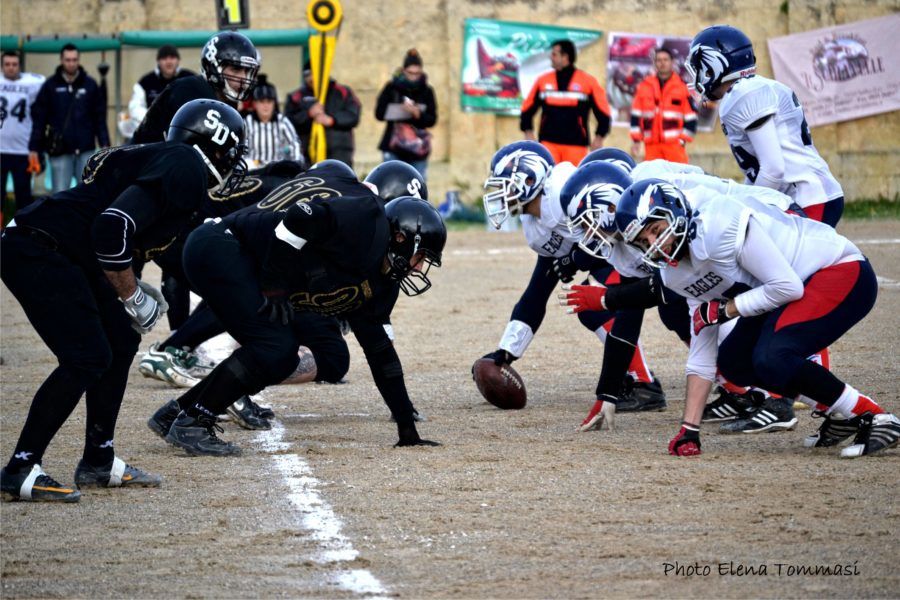 Seconda settimana di riposo per i Salento Dragons dopo la sconfitta di domenica 7 aprile a Salerno contro gli Eagles. Il match si è concluso con il risultato finale di 27 a0, una pesante sconfitta segnata da assenze importanti come quella del quarterback Martella e dei due runningback Quarta e Bellisario. “Partita molto tesa – commenta il capitano Gabriele Di Gennaro – considerato il risultato dell’andata che ci ha visto prevalere 19 a 7 sui salernitani. Ci aspettavamo di più ma le tante assenze per infortuni e le decisioni arbitrali, a volte discutibili, hanno condizionato l’intero match. Nulla da togliere al team degli Eagles che ha ottime individualità, una fra tutte il WR Formicola, vero MVP della partita”.