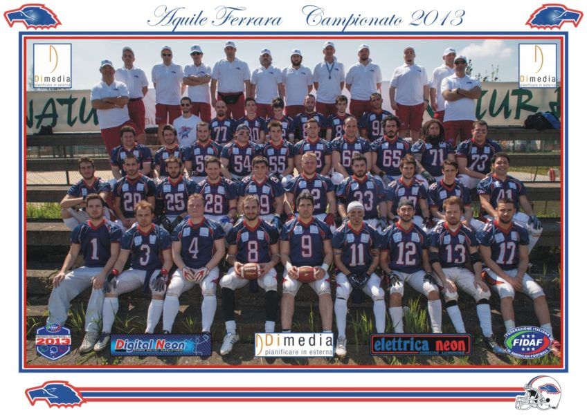 Le Dimedia “Aquile” vincono anche a Parma, anzi stravincono con uno “shutout” 40 a 0 che non ammette repliche, l’ennesimo risultato convincente che riconferma la squadra al comando della classifica del girone “D” della north conference nel campionato nazionale “CIF9”. Il match nascondeva qualche insidia per gli imbattuti ferraresi, davanti al loro pubblico i Bobcats si giocavano le ultime chances per una possibile qualificazione ai playoffs, e questo poteva rappresentare un ostacolo in più per gli estensi. Ma le Aquile non si sono fatte intimorire ed hanno mantenuto le redini della gara sin dalle prime battute di gioco e, ciò nonostante, avrebbero potuto senza difficoltà acquisire un punteggio addirittura superiore se solo avessero gestito la gara imponendo maggiormente il proprio ritmo anziché adagiarsi sul gioco dell’avversario. Ancora una volta una straordinaria ed insuperabile difesa ha mostrato gli “artigli” e per l’intera durata del match, ha concesso poco spazio ai ducali, costringendoli a limitatissimi guadagni di terreno e nessuna realizzazione. Anche l’attacco ha evidenziato a tratti tutta la sua forza e dinamicità, esibendo giocate belle ed efficaci con i soliti Marco Papa e  Dario Mingozzi  a creare scompiglio nella difesa parmense. Buono giornata anche per il fullback Alberto Romagnoli e per la batteria di ricevitori, Davide Sarto, Francesco Poletti e Ion Ursu puntuali e sicuri nel catturare i passaggi del bravo quarteback Francesco Malta, ben protetto da una linea d’attacco apparsa sempre sicura ed affidabile. Partono alla grande le Aquile che già nel primo drive offensivo riescono a raggiungere l’end zone avversaria con il flanker Dario Mingozzi per il primo touchdown della giornata (extra point da 1 punto di De Marco). La difesa continua a fare buona guardia e l’attacco, prima del’half time allunga, realizzando la seconda meta del match con il quarteback Francesco Malta che fissa il risultato sul 13 a 0 (trasformazione fallita). Nella ripresa le cose non cambiano, anzi sono proprio i ferraresi ad ingranare la marcia ed il divario diventa presto una vera voragine, Dario Mingozzi realizza altri due touchdown intervallati da una bella safety conquistata dalla difesa estense, mentre il runner Marco Papa chiude la giornata alla grande con altre due mete che fissano il risultato sul 40 a 0 finale. Oltre alla straordinaria prova della difesa guidata dal coach Luca Brunetti le Aquile sono apparse concrete e talvolta ciniche, riuscendo a sfruttare al meglio tutte le occasioni che si sono presentate nel corso del match. Ora il calendario della stagione concederà un turno di riposo agli estensi, anche se in realtà  per le Aquile sarà una settimana di duro lavoro in attesa del big match contro i temibili Knights Persiceto in programma a Ferrara sabato 4 maggio. La sfida contro i forti “Cavalieri” nero-argento, (l’unica formazione in grado di strappare la leadership del girone “D”) rappresenterà l’ultimo grande appuntamento della regular season, una vittoria nella difficilissima sfida  consegnerebbe alle “Dimedia” Aquile il primo posto nel “ranking” del tabellone playoffs, un risultato straordinario che concederebbe ai ferraresi la possibilità di disputare in casa tutti i match della post season.