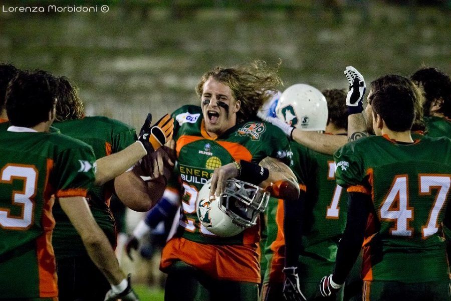 ENERGY BUILDING DOLPHINS ANCONA-PANTHERS PARMA (sabato 27 aprile ore 20, Stadio Dorico viale della Vittoria Ancona) – Come distinguere il sabato o la domenica da un giorno infrasettimanale, nei mesi di marzo e aprile? Semplice: se i Panthers sono in trasferta, vuol dire che è iniziato il weekend. Per via dell’inversione di campo di cui abbiamo parlato poche righe più su, i tre volte campioni d’Italia sono alla quarta partita fuori casa in quattro giornate, e il bello è che fin qui se ne sono fatti un baffo a tortiglione. Come dimostrano le quattro vittorie, la più convincente delle quali a Milano, sabato scorso, sui Seamen, una dimostrazione pratica di reattività e furbizia. Ma attenzione, non la furbizia all’italiana, spesso fraudolenta e cialtrona, bensì quella di chi all’arrivo dell’occasione giusta semplicemente la coglie nel modo migliore. Già ben rodati di loro, i parmigiani hanno infatti approfittato di tutte le opportunità ed hanno chiuso il discorso prima possibile. Ad Ancona trovano una squadra che si è però ripresa nel debutto casalingo di sabato, e che ora conta su una difesa di ottimo livello, in grado cioè di dare una mano all’attacco. Al momento i Dolphins sono primi per yard concesse su lancio, 107.3, anche se è notorio che le statistiche vanno interpretate e non solo lette, e a questo proposito il confronto con Tommaso Monardi e il suo rendimento offensivo sarà particolarmente significativo. Senza dimenticare che i Panthers finora hanno subito una media di 8 punti a partita. Parola ad Andrew Papoccia, head coach dei campioni d’Italia: «Ancona ha un sistema d’attacco difficile da difendere: conosce bene il football italiano e per questo spesso è capace di inventare delle giocate che ti prendono in contropiede».