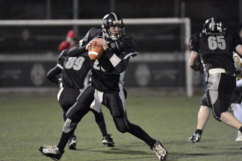 Pioggia, ma solo a tratti, ed un campo comunque agibile hanno fatto da corollario ad una partita tirata e che ha avuto fino all’ultimo la possibilità di cambiare nel risultato finale. Pubblico scarso anche a causa del ponte, ma il centinaio di presenti ha avuto modo di vedere un buon football e due squadre che non si sono risparmiate. Vincitori gli ospiti che, andati al riposo sotto di un punto, hanno azzerato la offense di casa andando a segno con un T.D. ed un Field Goal. Le squadre come nella partita di andata, vinta di misura dai Blacks, si sono equivalse tanto che solo una sessantina di Y.ds guadagnate le dividono a favore dei Frogs ed il risultato va a premiare quella che ha sbagliato di meno; tra le due formazioni ci sono ottimi rapporti e niente era in palio, ma questo non ha certo tolto stimoli agli atleti in campo. Peccato che da parte degli arbitri ci siano state forse troppe interruzioni di gioco ed una eccessiva fiscalità; 11 i falli sanzionati ai Blacks per 125 Y.ds, Blacks che ne avevano collezionati una ventina nelle sei partite già giocate e tre per 34 Y.ds degli ospiti. Ora Rivolesi fermi fino al 25/5 quando, sempre al C.U.S. alle 21,00 riceveranno la visita dei Mastini Verona per l’ultima partita del Campionato. La sosta dovrebbe però consentire di recuperare gli infortunati e ridare smalto ad un attacco che quest’anno non ha praticamente mai potuto scendere in campo al completo.