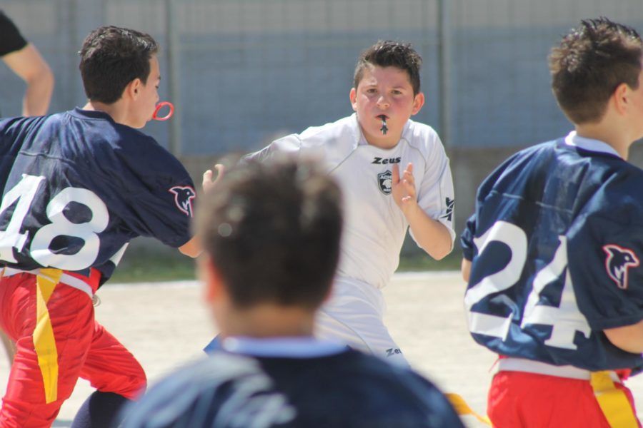 I giovanissimi della Flag invece hanno dimostrato di aver imparato la lezione del Bowl di Crotone, dove si sono presentati senza alcuna precedente esperienza agonistica, e hanno gridato forte ” ci siamo anche noi ! ” non poteva andare diversamente dopo l’appoggio di capitan Caruso che con la sua esuberanza ha condizionato positivamente i suoi pupilli facendoli diventare piu’ reattivi fino al punto di sperimentare finalmente l’attraversamento della fatidica linea di meta in una competizione ufficiale. Bene quindi, ma e’ solo il punto da cui si parte quindi buon lavoro a coach Stefano che prima dell’ultimo appuntamento di Taranto dovra’ farli lavorare sodo. Il migliore in campo è stato Francesco De Biase. Questa è stata la valutazione data dal Direttore sportivo Crotonese Massimo Arrighi. “ Questo piccolo oplita ha interpretato perfettamente cio’ che ogni vero giocatore dovrebbe fare da adulto. Attento, concentratissimo, serio, non ha mostrato timori o incertezze nei confronti degli avversari chiudendo un numero impressionante di placcaggi sulle corse e riuscendo con ostinazione ad intercettare lanci che gli avversari strumentalmente effettuavano contrapponendogli atleti nettamente piu’ alti di lui. In una parola sola Francesco e’ uno che non molla mai e per questo si merita il titolo di MVP del torneo Flag di Lecce……complimenti Francesco ti chiediamo di continuare cosi’ e ogni tanto di regalaci un tuo sorriso”. I punteggi testimoniano l’equilibrio degli incontri ed evidenziano il progresso dei ragazzi Crotonesi rispetto all’esordio. Achei Crotone – Delfini Taranto 28 – 40 Achei Crotone – Salento Dragons 16 – 26