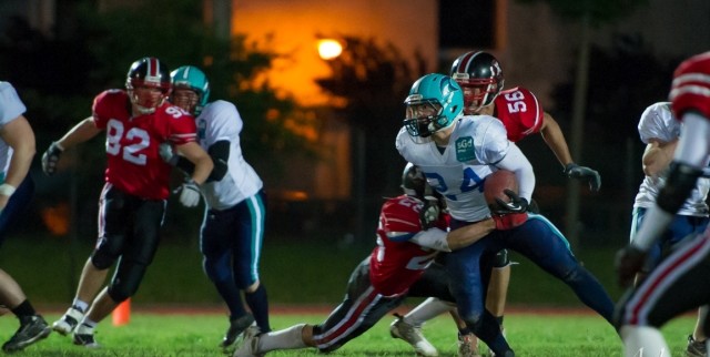 Venezia, 20 maggio 2013 – Gli Islanders Venezia archiviano la regular season espugnando 14-6 il campo dei Cavaliers Castelfranco, consolidano il secondo posto nel Girone E, che li ha visti chiudere con 10 punti (5-3) alle spalle degli imbattuti Lions Bergamo, e attendono di conoscere l’abbinamento post season nella wild card che dà accesso ai quarti di finale per l’Italian Bowl. Quello del week 11 della serie A2 LENAF, ultima giornata in attesa dei recuperi del 25-26 maggio, è stato un derby duro, caratterizzato da agonismo e contatti al limite con un serio infortunio al running back Iacopo Tiozzo. Alla fine gli Islanders di coach Kreamer ottengono un meritato successo confermando la serie positiva nei derby: quattro vittorie in quattro incroci con Saints Padova e Cavaliers.