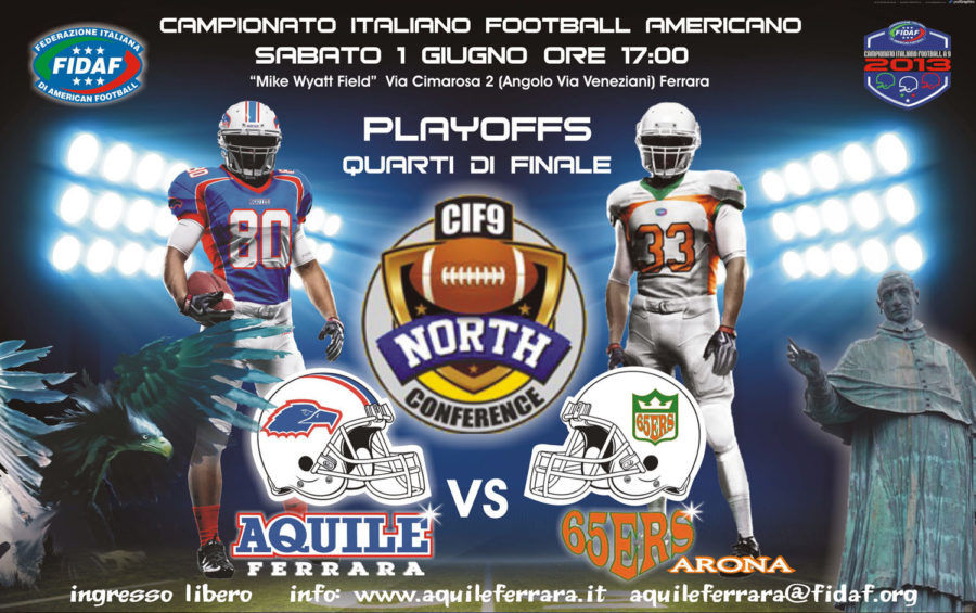 E’ tutto pronto per dare il calcio d’inizio al match “Dimedia” Aquile – 65ers Arona, la gara di playoffs valida per i quarti di finale della North Conference del campionato di football americano targato CIF9 2013. Gli estensi, primi della classe, sono chiamati ad una prova importante, e dovranno mostrare tutto il loro valore in una partita che potrà fornire alcune risposte importanti per capire il vero ruolo di ogni team in questa seconda fase del campionato. Pur militando in due differenti gironi i numeri evidenziati dalle statistiche del campionato sembrano favorire i rapaci ferraresi che, oltre ad essere imbattuti, appaiono decisamente più solidi sia in attacco che in difesa. I 65ers Arona hanno chiuso la regular season al secondo posto del girone “B” della North Conference alle spalle dei forti Mastini Ivrea, guadagnando così la possibilità di accedere alle wildcards per la seconda fase del campionato. L’ottimo attacco piemontese ha realizzato 214 punti con una media partita di 30,57, mentre la difesa ne ha subiti 97, numeri che complessivamente collocano i 65ers al 12 posto nel ranking generale. Il reparto offensivo è guidato dal quarterback Omar Passera che ha chiuso la regular season con 39 lanci completati sui 112 effettuati (5 intercetti) per 428 yard guadagnate e 11 TD Pass, ma l’attacco dei piemontesi trova la sua forza anche nelle corse dei runningback Giuseppe Della Vecchia, Emanuele Mascelli e dello stesso Passera che complessivamente hanno permesso di guadagnare ai verde-arancio 993 yard totali. Nel reparto difensivo si sono evidenziati i linebacker Paolo Calabrese, Festjan Selmani e Giovanni Tondina mentre nella secondaria si è messo in evidenza il defensive backs Thomas Alberici che nel corso della regular season ha realizzato due intercetti. Differenti i numeri degli estensi che hanno vinto il girone “D” della North Conference e guadagnato il primo posto e la testa di serie nr. 1 del tabellone playoffs. In attacco le Aquile hanno realizzato 211 punti con una media partita di 35,17, mentre la difesa ha subito solamente 52 punti, numeri che collocano i ferraresi al sesto posto nel ranking generale, ma va anche sottolineato che il raggruppamento degli estensi era considerato di fatto il più duro ed impegnativo dell’intero campionato e di conseguenza il risultato ottenuto contro formazioni sicuramente valide e competitive rende ancor più rilevante e significativo il piazzamento. Per quanto riguarda il match di sabato l’attacco estense sarà guidato dal quarterback Francesco Malta che nel corso della partita si alternerà con il rientrante Ruggero Cavallino, bersagli preferiti dei registi ferraresi saranno i ricevitori Dario Mingozzi, Ion Ursu, Davide Sarto e Francesco Poletti, mentre per il gioco di corsa ci penseranno gli ottimi runningback Marco Papa, Alberto Romagnoli ed Eddi Carolo, un reparto decisamente produttivo ed efficace. In difesa i protagonisti saranno i lineman Andrea Pasquali e Paolo Fondi, i linebacker Stefano Zerbini, Andrea Mantovani e Francesco Sicignano, mentre nella secondaria si schiereranno gli esperti defensive backs Federico Barbieri, Vito De Marco e Giacomo Rizzo. I numeri evidenziano la supremazia delle Aquile rispetto a quella dei piemontesi, ma pur partendo con i favori del pronostico i bianco rosso blu estensi si troveranno di fronte una compagine agguerrita ed affamata che non avendo nulla da perdere affronterà la partita a viso aperto e senza alcun tipo di pressione, e sappiamo che nei playoff tutto questo può rappresentare il vero punto di forza. Non resta che attendere il verdetto del campo, il calcio d’inizio è fissato alle ore 17:00 al “Mike Wyatt Field” di Via Veneziani.
