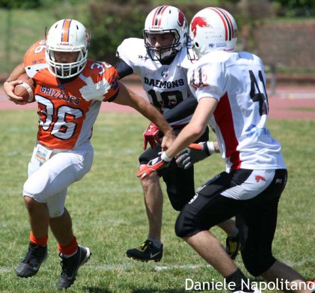 Con un touchdown su corsa di una yard del QB Ianniello a 1’30” dal termine, e la successiva trasformazione al piede di Bianco che fissa il punteggio sul 7-0, i Grizzlies conquistano la vittoria nella wild card contro i Daemons Martesana. Partita durissima e corretta, combattuta fino allo stremo, con le difese padrone dei rispettivi attacchi avversari, i Grizzlies capitalizzano l’unica occasione utile offerta da un punt calciato dagli avversari sulle proprie 24 yards, conquistando così l’accesso ai quarti di finale.