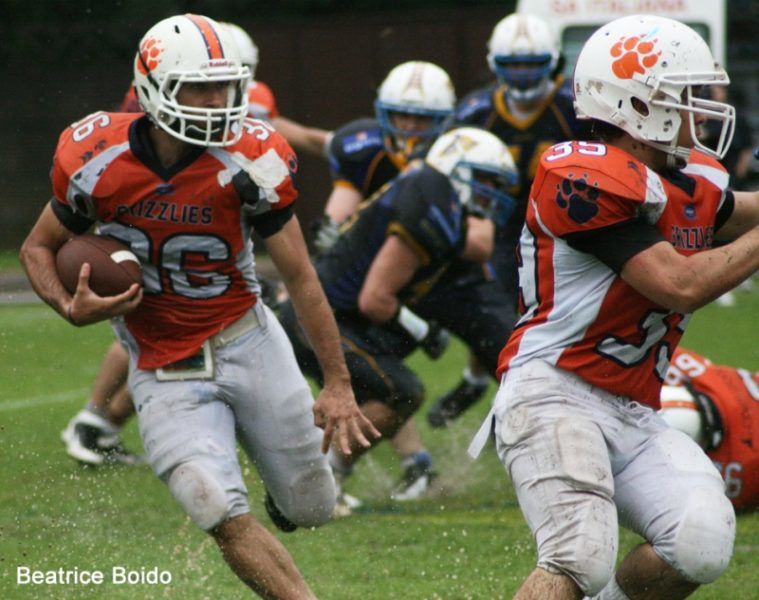 Da segnalare, oltre ai soliti Insom e Lucariello e l’intero reparto dei linebackers romani, l’ottima prova di Vieira, ricevitore prestato alla difesa autore di un intercetto e numerosi placcaggi, e del nose tackle Wakavonovono: il 25 enne delle Isole Fiji con trascorsi nel rugby, arrivato a Roma per frequentare un corso di studi ed adottato ormai ufficialmente dalla famiglia Grizzlies, sta mettendo in pratica nel migliore dei modi gli insegnamenti di coach Luciano Faccini erigendo, con i suoi 130 kg., un solido muro al centro della linea di difesa capitolina. Altra nota di merito va senza dubbio agli uomini di linea di attacco che, grazie alla rapidità ed alla tecnica trasferita loro da coach Gramigna, riescono spesso a dominare avversari ben più pesanti ed aprire i varchi necessari per avanzare la palla: su un terreno al limite del praticabile, infatti, i vari Sciortino, Rubano, Arcioni, Palazzini, Fabiani e Mariani hanno lottato come leoni uscendo dal campo stremati ma vincenti, mentre sulla sideline il rientrante Galimi, loro compagno di reparto infortunato in allenamento a pochi giorni dall’inizio del campionato ed operato al crociato a metà marzo, aspettava l’occasione per rientrare in campo dopo un recupero quasi miracoloso.