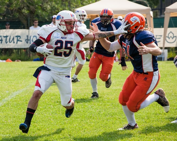 Un Ninebowl, quello di Spoleto, che si prospetta spettacolare contro una formazione che sta vivendo un ottimo periodo di forma e che dal punto di vista tecnico risulta simile a quella estense. In effetti, per entrambe le compagini è stata una bellissima stagione, i ferraresi hanno raggiunto la finalissima con un cammino impeccabile, vincendo tutte le partite di regular season, evidenziando un reparto offensivo brillante, estremamente produttivo, tecnico e veloce ed una difesa straordinaria capace di bloccare in maniera efficace tutti gli attacchi fin qui incontrati, alcuni dei quali sicuramente di grande valore. Per i Red Jackets è stato invece un cammino in crescendo, dopo la sconfitta di misura avvenuta ad inizio campionato, nell’esordio casalingo contro gli Storms Pisa, la formazione ligure ha ingranato la giusta marcia, trovato l’assetto corretto e pian piano ha mostrato tutto il suo valore presentando un football spumeggiante e creativo, soprattutto in attacco, dove i liguri sono stati in grado di realizzare la bellezza di 380 punti, con 42 punti di media a partita, mostrando grande equilibrio sia nel gioco di corsa che in quello aereo. Meno performante la difesa, soprattutto nella seconda fase della stagione, ma capace comunque di contenere gli avversari e trascinare le “giacche rosse” sino alla finalissima. Ma quello che sicuramente accomuna maggiormente i due team è l’aspetto caratteriale, entrambe le squadre infatti sono dotate di grande temperamento e determinazione dimostrando di essere formazioni capaci di lottare fino alla fine contro ogni avversario e contro ogni avversità. C’è tensione ovviamente fra le file estensi ma anche la coscienza di potersi giocare questa finale con lo spirito che ha contraddistinto le Aquile nelle ultime stagioni, combattive sempre, anche nelle situazioni più difficili e contro le avversarie più agguerrite, mostrando carattere e la capacità di essere sempre in partita e poterla decidere senza lasciare il risultato in mano agli avversari. Un attacco, quello estense, che ha evidenziato buona tecnica e una grande varietà di giochi per tutto il campionato; un sistema “no huddle” coordinato da Alessandro Paltrinieri che nelle ultime 3 partite di playoff ha segnato una media di oltre 45 punti ad incontro.