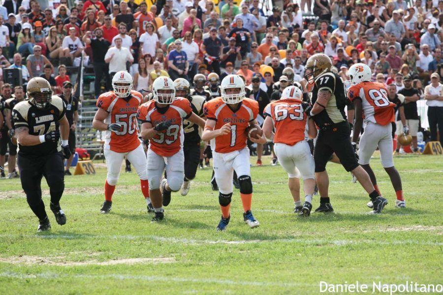 Sono i Grizzlies Roma i campioni Lenaf. E’ stata la formazione capitolina, al termine di una stagione che l’ha vista in continua crescita, a vincere l’Italian Bowl 2013 disputato nella splendida location di Mirabilandia davanti a oltre 1500 spettatori tra cui molti visitatori del parco che si sono fermati, incuriositi dalla partita e dal Football Americano. 16-7 il punteggio finale con cui i Grizzlies, che lo scorso anno erano stati sconfitti in finale dai Barbari, hanno battuto i Lions Bergamo, favoriti della vigilia. Ma le finali sono così, non si giocano sulla carta e qualsiasi previsione può essere smentita. Ma in una partita dominata dalle difese, i bergamaschi non sono riusciti a sviluppare il loro solito gioco offensivo sulle corse e non sono mai riusciti a colpire sul gioco aereo. Recuperato un febbricitante Ianniello, i Grizzlies partono forte con Mingoli che va a segno con una corsa di 12 yard. E’ 7-0, che poco dopo diventa 14-0 con una spettacolare corsa di 65 yard conclusa in end zone da Vieira. Con questo punteggio si chiude il secondo periodo. Terzo periodo di marca bergamasca, con Cadè che raccoglie un lungo lancio di Carminati e così Ghislandi può accorciare per il 14-7. E’ il momento migliore per i Lions, ma i Grizzlies, che faticano in attacco, resistono con una grande difesa, finché non aumentano il vantaggio con una saferty: 16-7. Il punteggio non cambia, l’attacco di Lions non ne ha più e può iniziare la festa dei Grizzlies, che vendicano il ko con i Barbari dello scorso anno e, risalendo a quasi 30 anni fa, la sfida del 1986 dove, pur essendo favoriti, furono sconfitti proprio dai Lions. Applausi per tutti, alla fine. Per i campioni che hanno meritato il titolo e per gli sconfitti, protagonisti di una grande stagione e bravi a vendere cara la pelle fino alla fine.