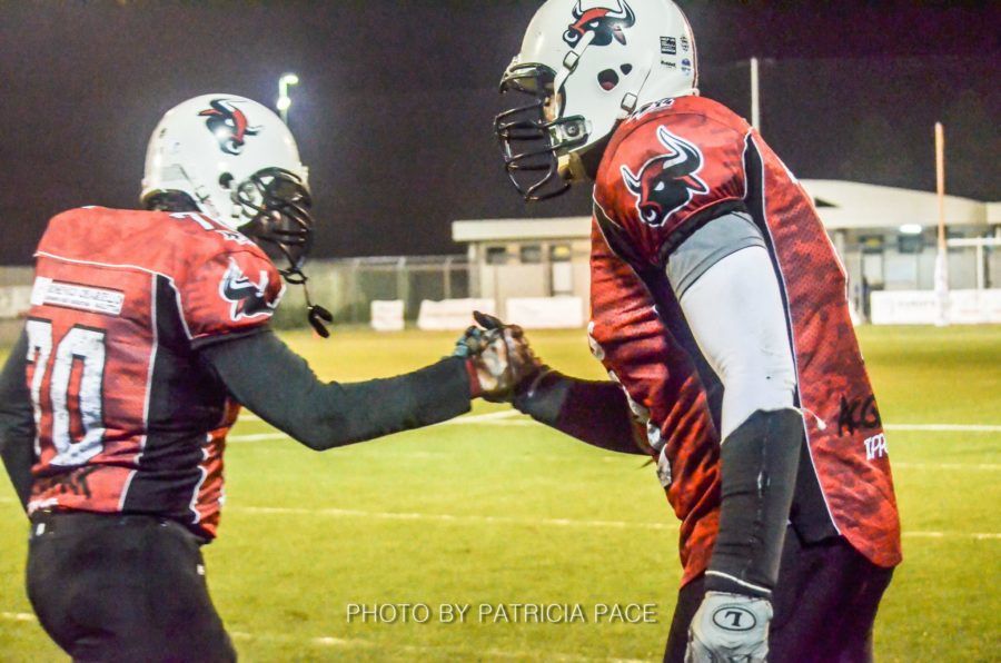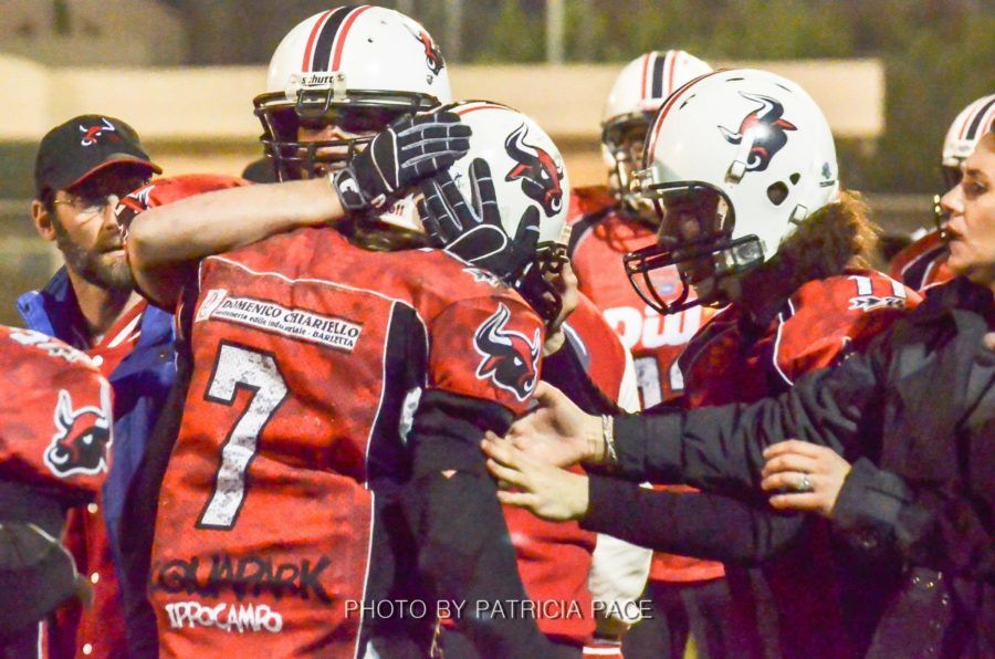 A pochi minuti dall’inizio del secondo quarto i Bulls recuperano velocemente grazie ad un intercetto che ha regalato al team uno spettacolare touchdown da 50 yard facendo riaffiorare la grinta e la voglia di entrare nei Playoff. Tifoseria bollente quella dei Mad Bulls che con cori, fumogeni bianco-rossi e mascotte hanno acceso l’intero “Manzi Chiuplin“.