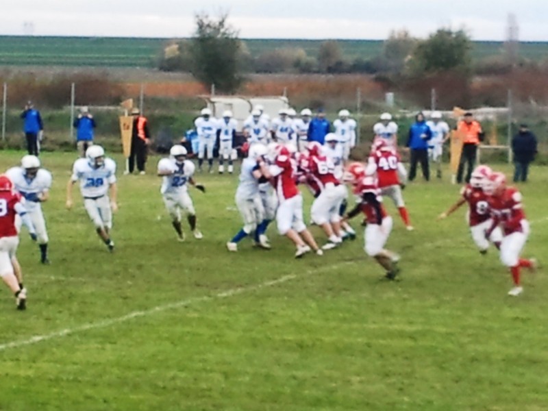 Da segnalare la stupenda cornice di striscioni a bordo campo, palloncini bianchi e rossi, e tifosi con tanto di sciarpe con la Colomba ricamata a partecipare alla festa finale sul campo dove già si respira aria di sfida all’ultima yarda contro gli Hogs.