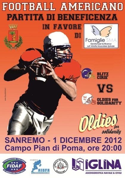 Siamo lieti di comunicare che sabato 1 dicembre 2012 alle 20:00 a Sanremo presso il campo “pian di poma” si svolgerà la manifestazione di Football Americano a scopo benefico “Sanremo Football Night” .