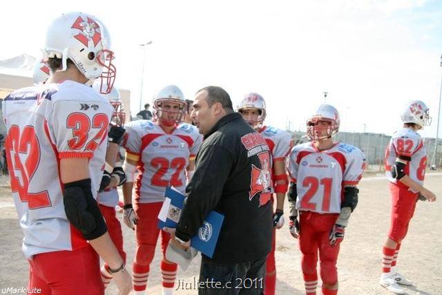 “Nella prima partita i ragazzi sono stati bravissimi: subito concentrati, con la difesa molto ordinata e aggressiva, secondo i desiderata del difensive coordinator Nicola Polese. L’attacco ha tardato qualche drive a ingranare, ma Matteo ‘Lyra’ Todde in cabina di regia si è rivelato un ottimo QB. L’esordiente Pierpaolo ‘Poldo’ Mudu si è messo in mostra con delle autentiche prodezze. Alberto ‘Bebo’ Cannas e Riccardo Cuccu hanno sicuramente dato a questa squadra quel qualcosa in più che ci ha permesso di essere nettamente superiori.