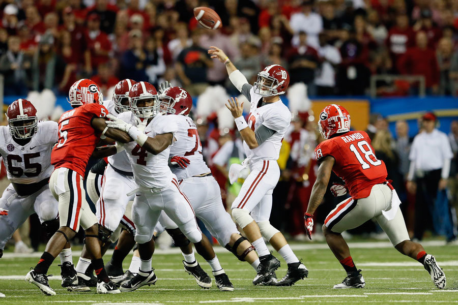 Il match più atteso era quello della South Eastern Conference (SEC). Al Georgia Dome di Atlanta, casa degli Atlanta Falcons, si scontravano i Georgia Bulldogs ed i dominatori degli ultimi anni di football collegiale, gli Alabama Crimson Tide. In settembre il pronostico di una sfida simile sarebbe stato tutto in favore di ‘Bama, tuttavia la stagione ha mostrato che la squadra di Nick Saban non è una corazzata senza difetti come per esempio era apparsa nel 2011 e, al tempo stesso, i Bulldogs guidati da Mark Richt hanno evidenziato un’impressionante crescita progressiva, che li ha resi competitivi nella conference più dura e ricca di talento dell’intera nazione.